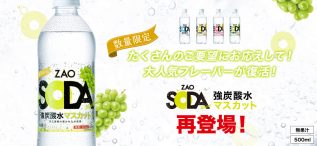 爽やかでみずみずしいマスカットの香りが特徴の「ZAO SODAマスカット」が数量限定で再登場! 2023年の春に発売した期間限定のマスカットフレーバーが お客様から多くのお問い合わせをいただき、数量限定で再販が決定いたしました! 自社のInstagramアカウントのアンケートでも大変人気のあるフレーバーです。 天然果実から抽出したエキスを香料に使用し、フレッ...
