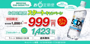 いつもLIFEDRINKオンラインストア 本店をご利用いただき、誠にありがとうございます!お届けサイクルやお届け指定日をご自身の好みに合わせてお選びいただける、 お得且つ便利なサービスの「お得定期便」に、機能性表示食品「ZAO SODAプラス」の新コースが登場! 「ZAO SODAプラス」は、食事の脂肪や糖の吸収を抑える機能やおなかの調子を整える機能があると...