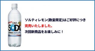 期間限定「ZAO SODA 500ml ソルティレモン」は完売いたしました。たくさんのお客様にご愛顧いただき、ありがとうございます。次回新商品をお楽しみに!LIFEDRINKオンラインストアでは、お客様にご満足いただける商品開発に努めております。ぜひ、飲んだ感想をレビューでお聞かせいただけますと幸いです。炭酸水レビュー投稿はこちら (ご購入いただいた方のみレ...